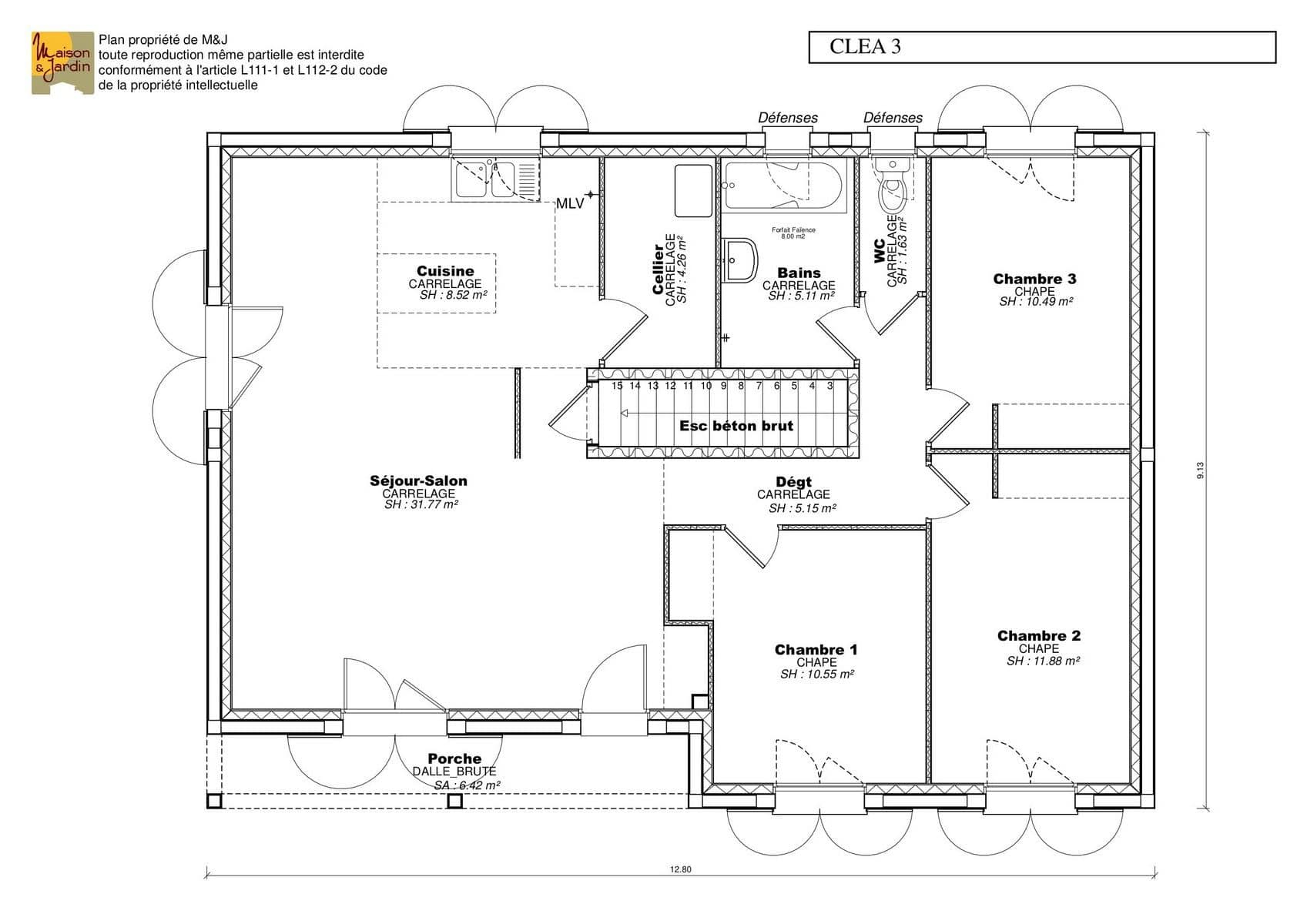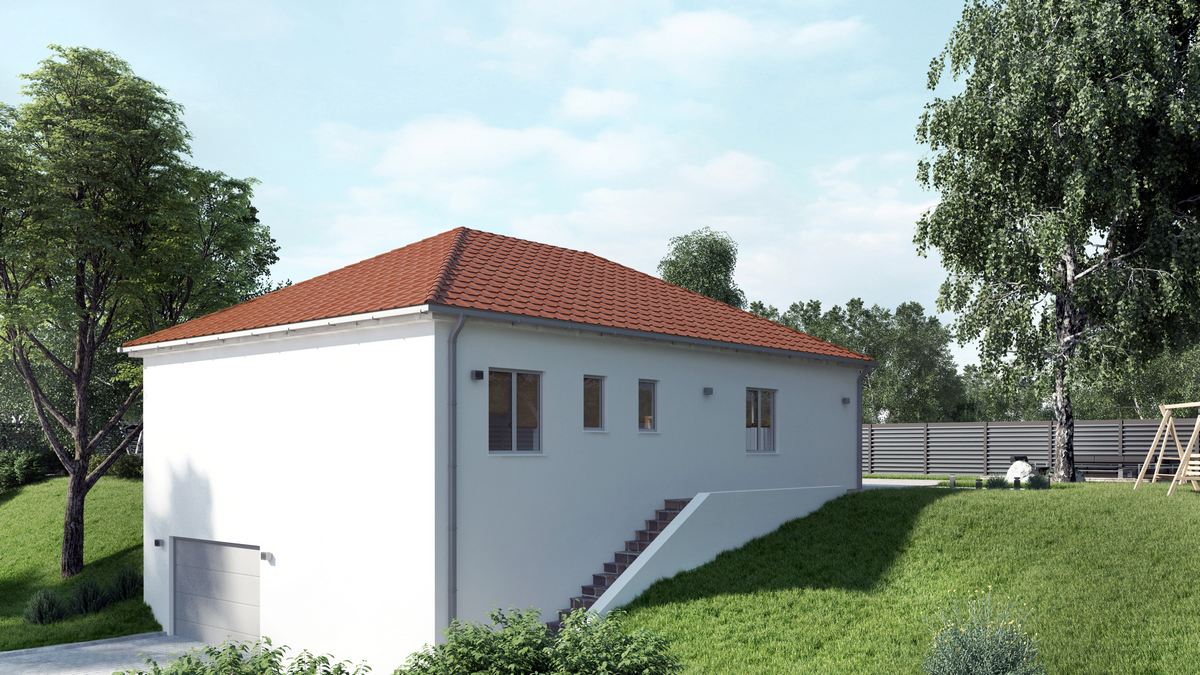 Ideael pour des terrains pentus, cette maison Cléa dispose d’un vaste sous-sol et d’une toiture 2 ou 4 versants.