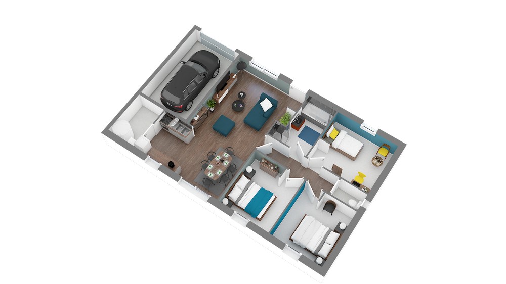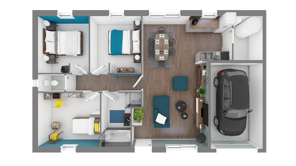 Modèle phare de notre gamme de maisons grâce à son excellent rapport qualité/prix, la Focus 80 est une maison efficace et consensuelle qui va à l’essentielle. Ce modèle propose 3 chambres, un vaste séjour et un garage intégré, le tout avec un design contemporaine et jeune..et surtout il se démarque par son prix d’appel imbattable. Un coup de coeur _
