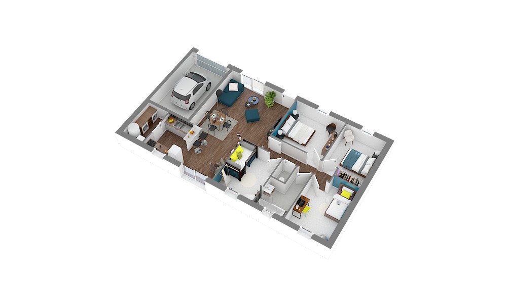 L’espace n’est plus un luxe ! Ce célèbre slogan colle parfaitement à cette Focus 91? maison familiale par excellence avec 4 chambres et une grande pièce de vie. Ajouter y un grand garage intégré et vous obtenez une maison surprenante de par sa convivialité. Son design extérieur, jeune et indémodable, la rend particulièrement désirable. Mais ce qui vous fera vraiment craquer, c’est son prix, tout simplement inimaginable pour une maison base consommation.
