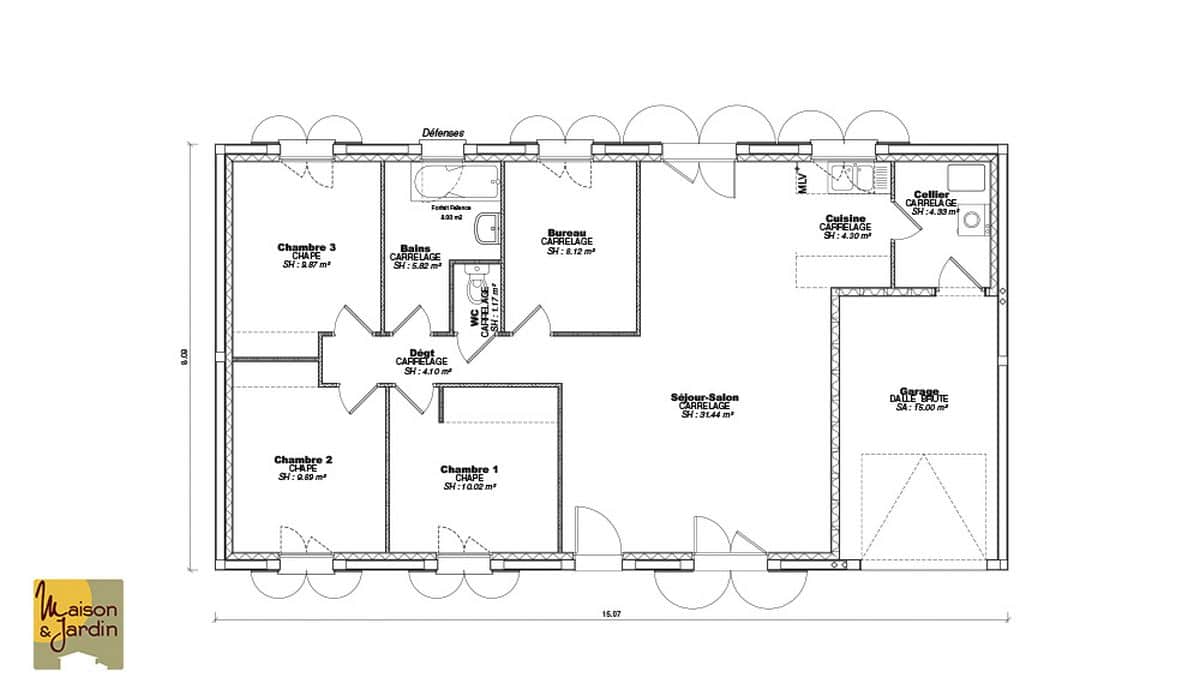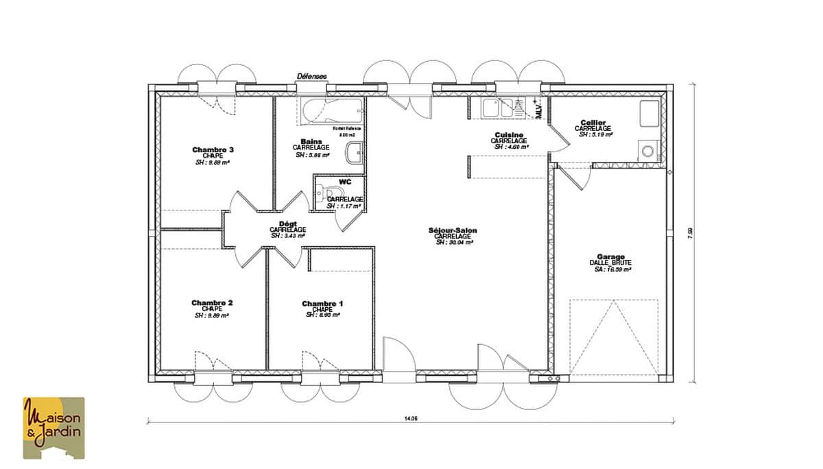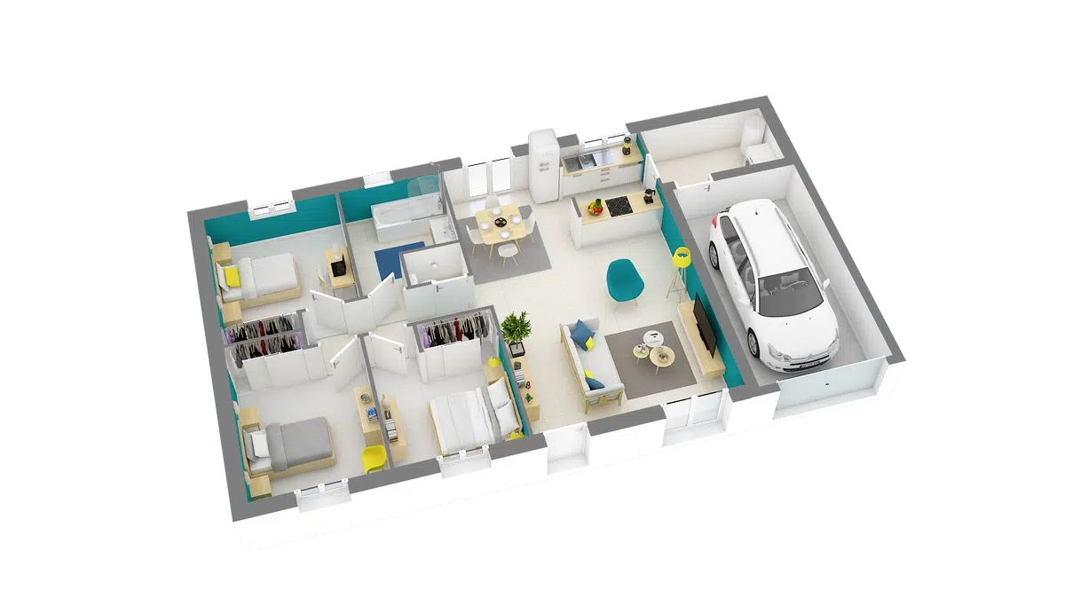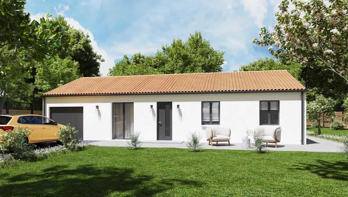 Maison rectangulaire très fonctionnelle, disposant de 3 ou 4 chambres et d’un garage de 16m². La Lisa est la maison parfaite pour un premier projet d’accession à la propriété.