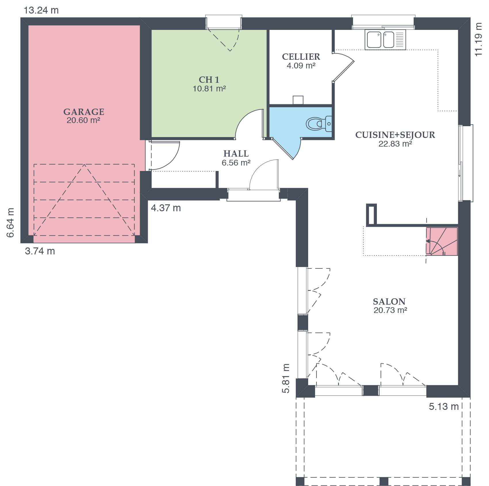 Evolutive, elle vous est proposée de 3 à 5 chambres avec la possibilité d’ajouter des volumes à son plan initial.