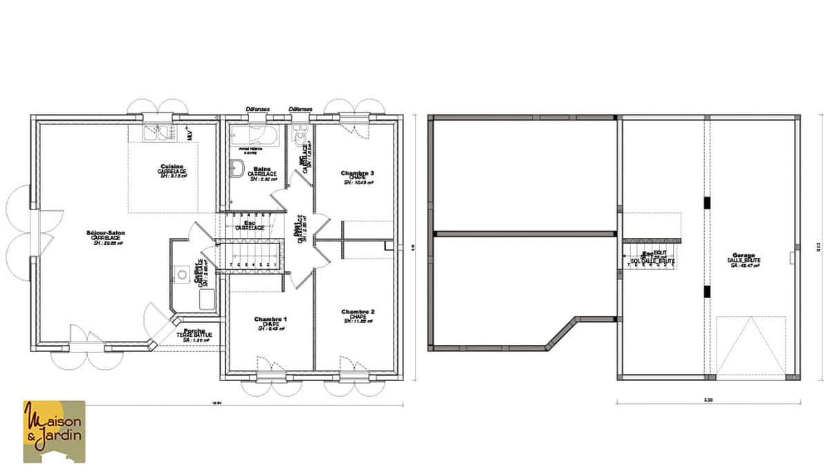 Modèle très bien adapté aux terrains pentus, la Solara vous propose un plan en demi niveau.