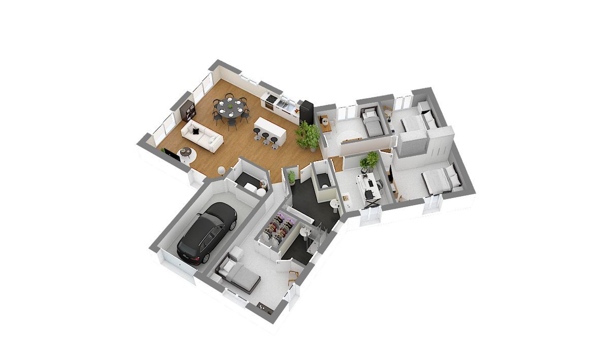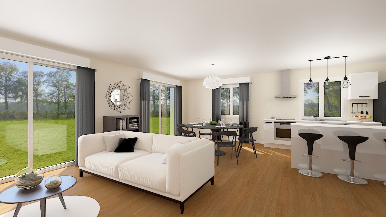 Modele avec plan de plain pied très contemporain offrant une partie jour centrale et conviviale, la Stella est une maison familiale par excellence.