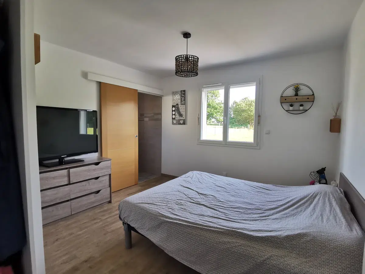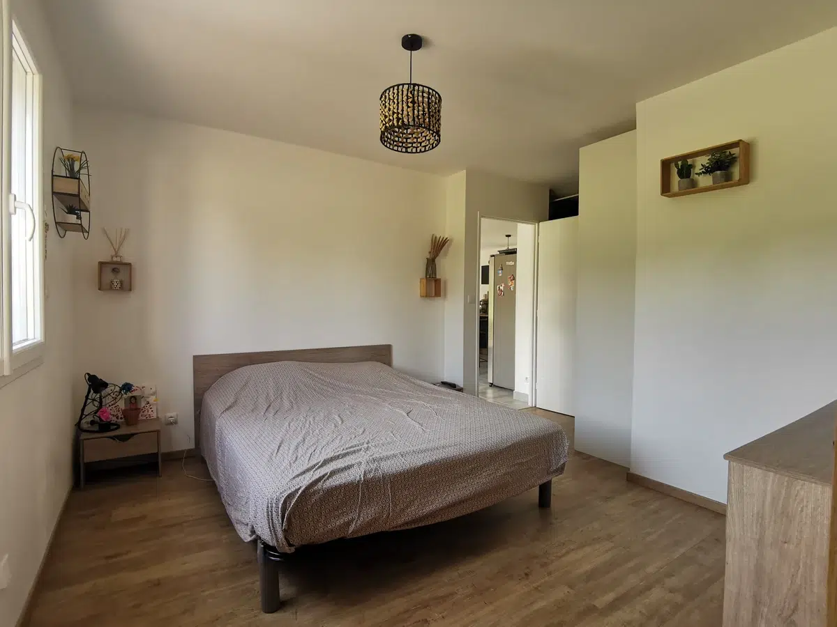 La maison dispose de trois chambres à coucher, chacune offrant une intimité et un confort absolu. La chambre principale est un véritable havre de paix, avec son propre dressing et une salle de bains attenante comprenant une douche à l’italienne et une baignoire profonde. Les deux autres chambres sont également spacieuses et bénéficient de placards intégrés.