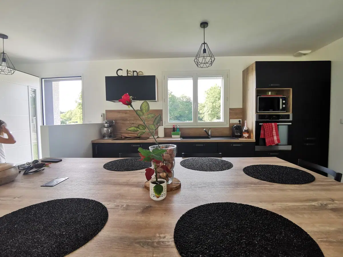 La cuisine moderne est totalement ouverte sur le salon, spacieux et convivial.