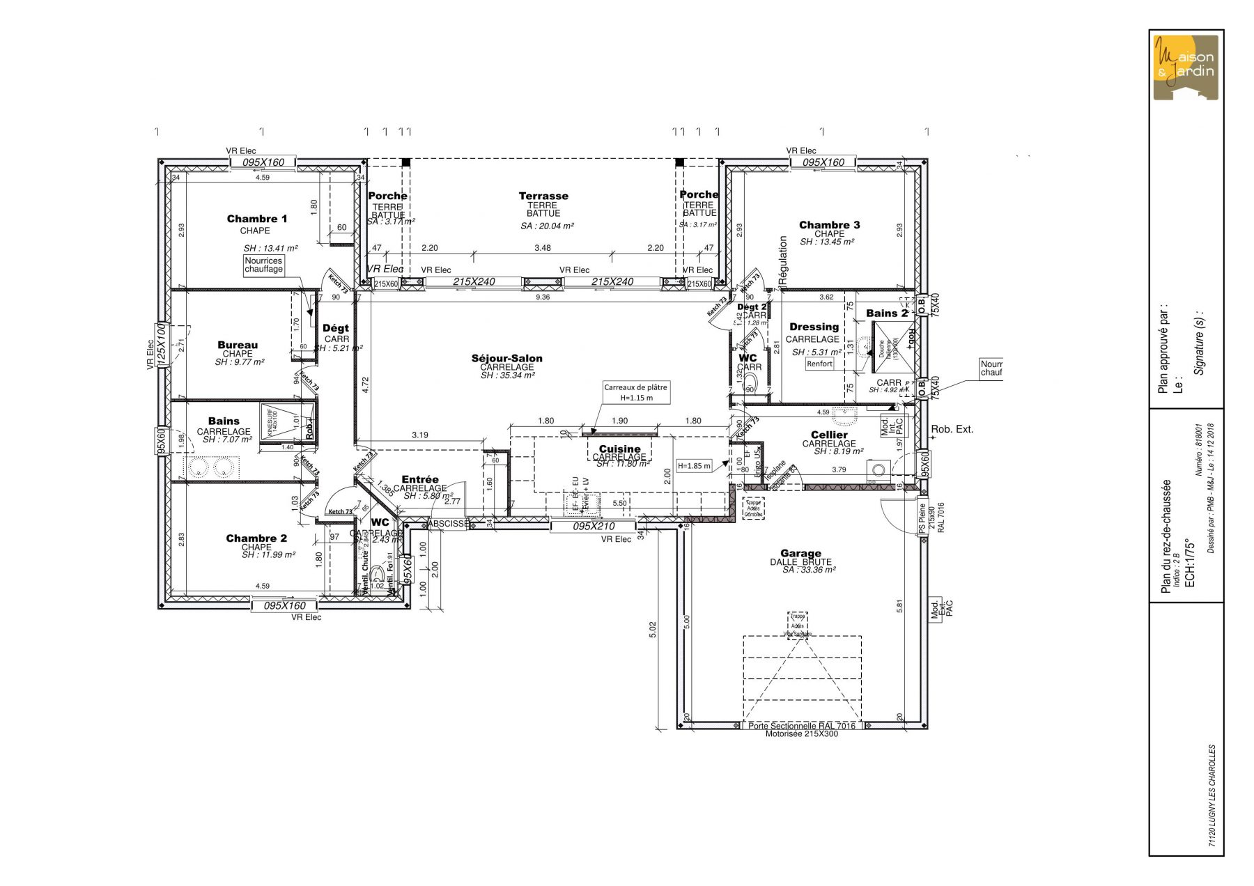 Cette habitation offre un bureau et trois chambres, dont une suite parentale superbe, avec dressing et salle d’eau. Cette belle demeure dispose également d’un grand garage.